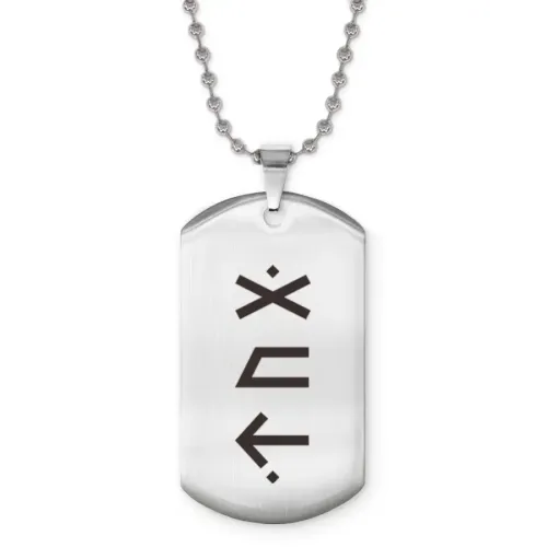 Сувенирный жетон на цепочке с лазерной гравировкой. Материал — нержавеющая сталь.