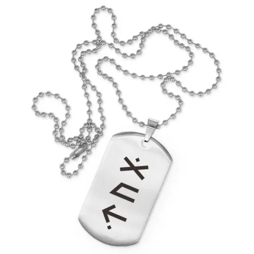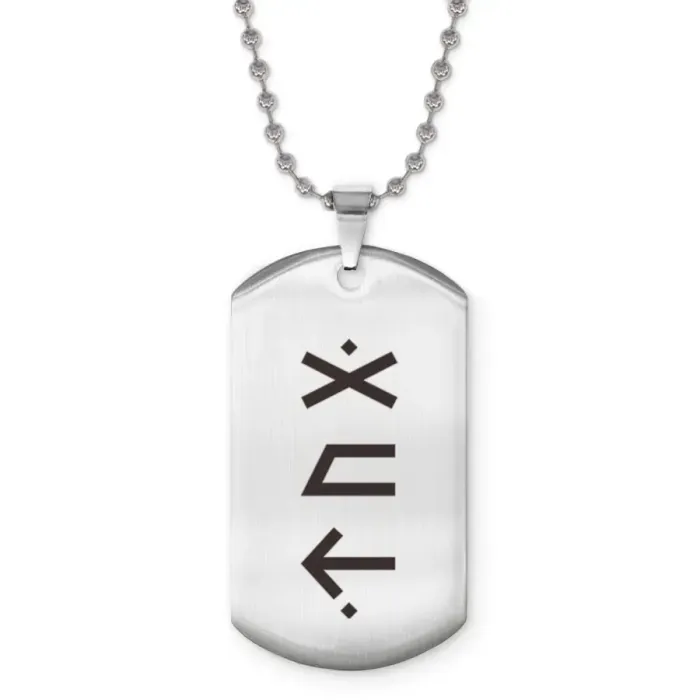 Размеры и комплектация: Размер жетона: 50x28 мм. Длина цепочки: 60 см (регулируемая). Упаковка: прозрачный пакет.