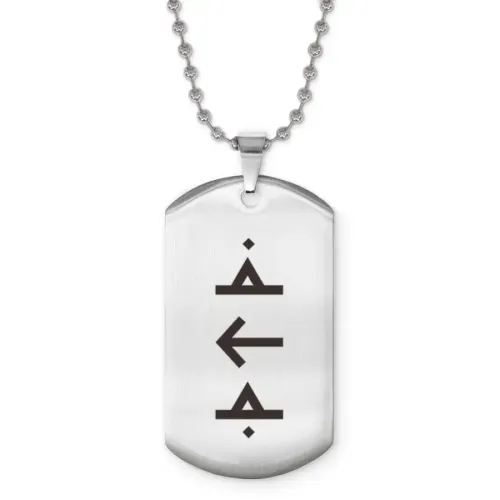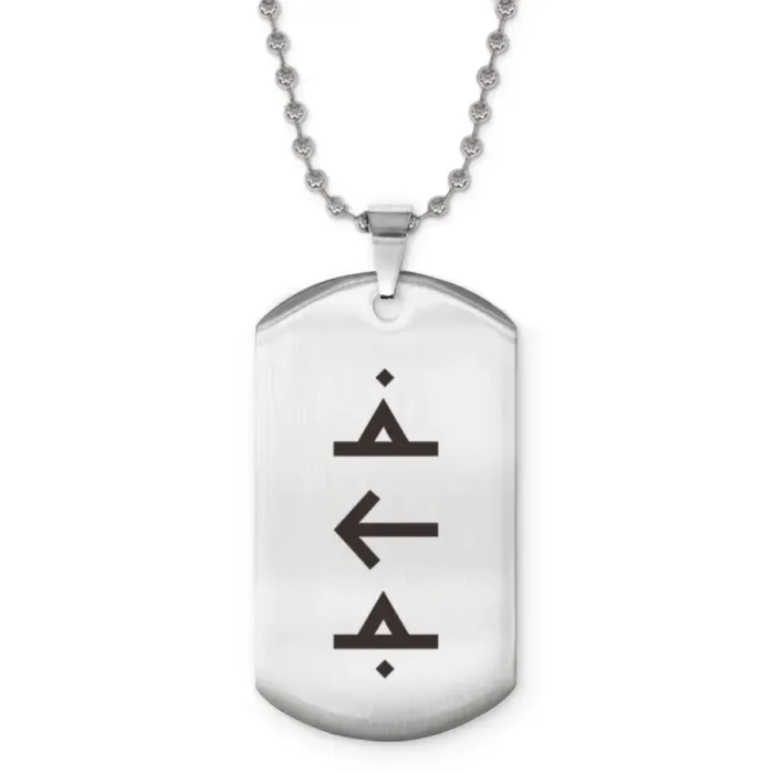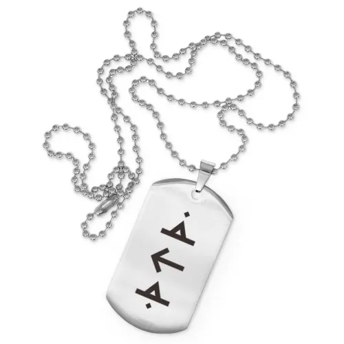 Защитный жетон на цепочке из нержавеющей стали с лазерной гравировкой рун.