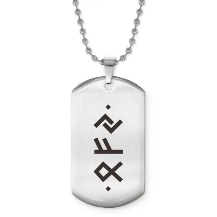 Сувенирный жетон на цепочке с изображением рун. Изготовлен из нержавеющей стали.