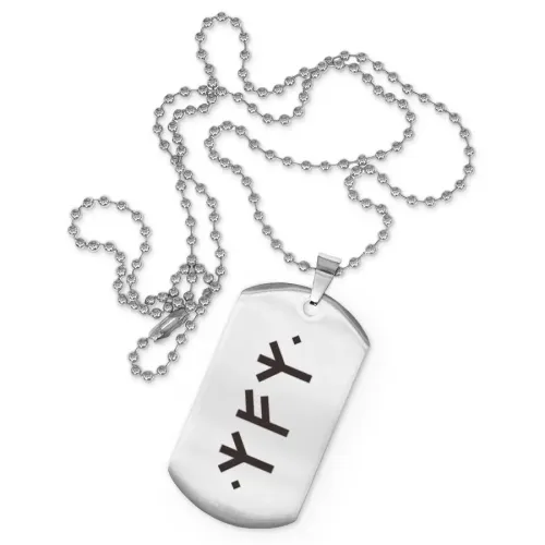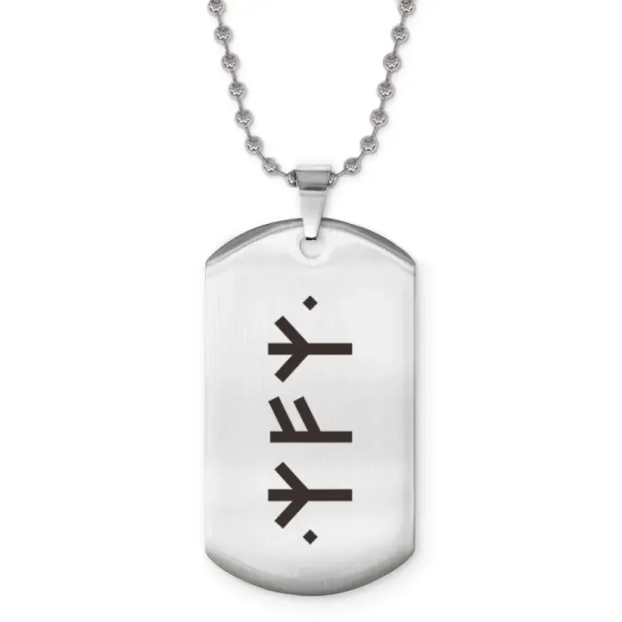 Жетон на цепочке для сувенирных целей, изготовленный из нержавеющей стали с лазерной гравировкой.