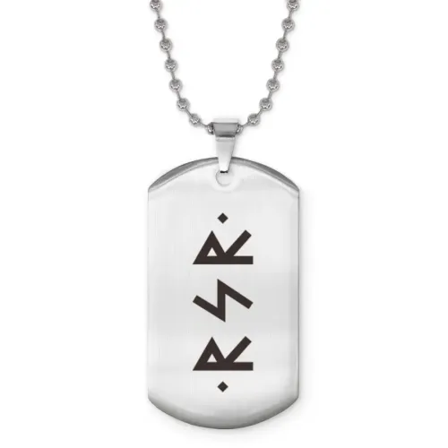 Размеры и комплектация: Размер жетона: 50x28 мм. Длина цепочки: 60 см, регулируемая. Упаковка: прозрачный пакет.