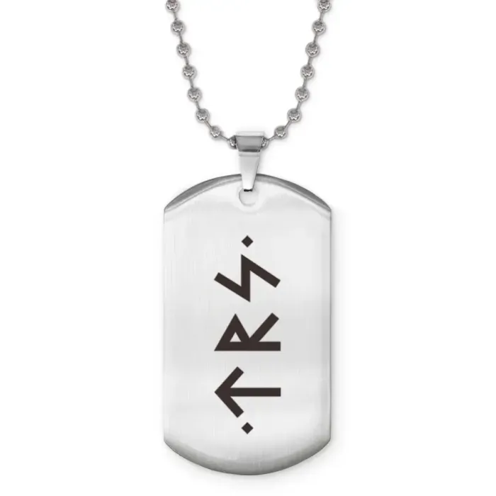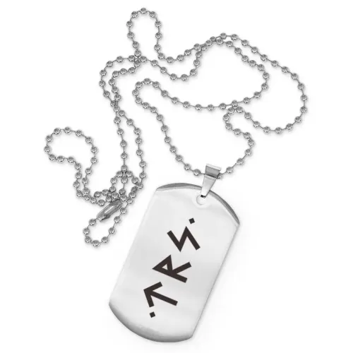 Сувенирный жетон на цепочке из нержавеющей стали с лазерной гравировкой рун.