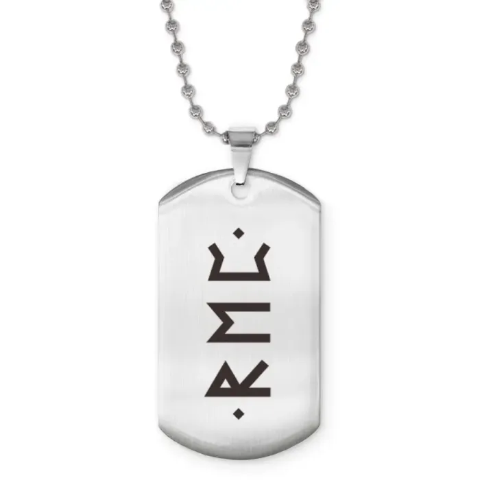Сувенирный жетон на цепочке с лазерной гравировкой рун. Материал — нержавеющая сталь.