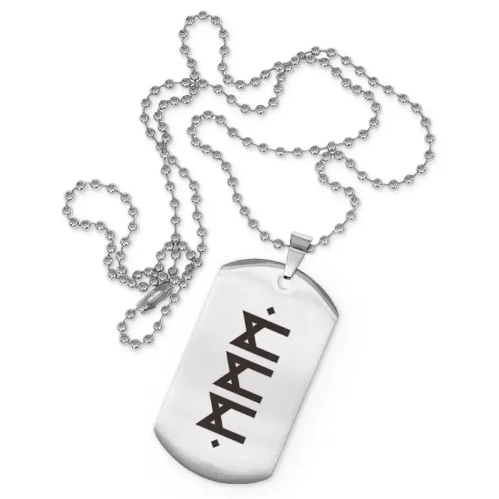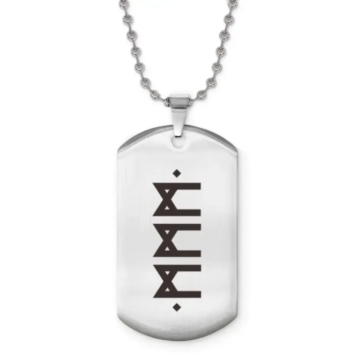 Сувенирный жетон на цепочке с символикой древних рун. Изготовлен из нержавеющей стали с лазерной гравировкой.