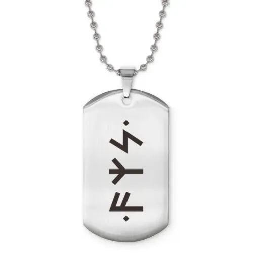 Сувенирный жетон на цепочке из нержавеющей стали с лазерной гравировкой рунической формулы.