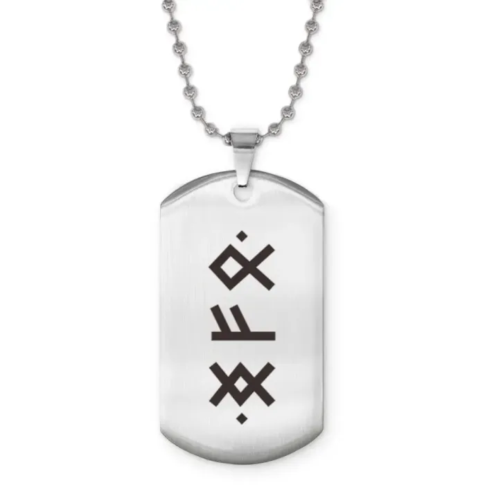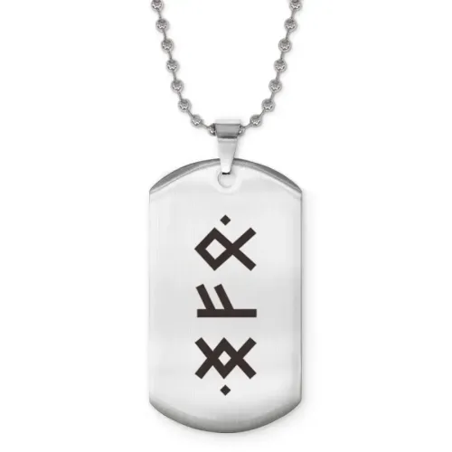 Сувенирный жетон на цепочке с символикой рун. Изготовлен из нержавеющей стали с лазерной гравировкой.