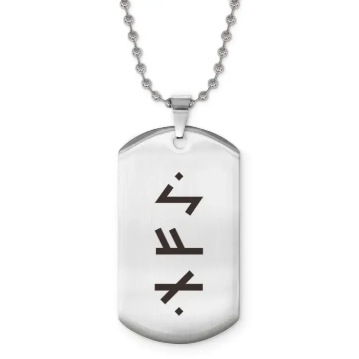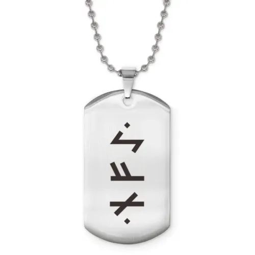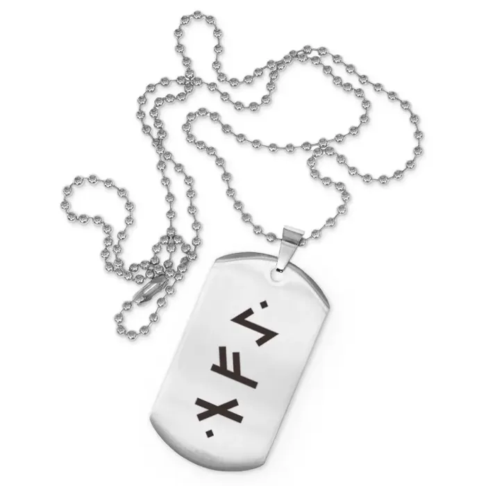 Жетон на цепочке с рунической формулой. Изготовлен из нержавеющей стали с лазерной гравировкой.