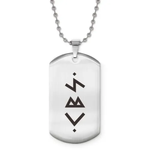 Размеры и комплектация: Размер жетона: 50x28 мм. Длина цепочки: 60 см, регулируемая. Упаковка: прозрачный пакет.