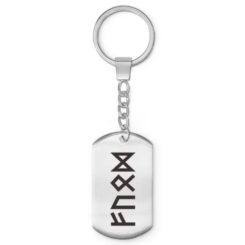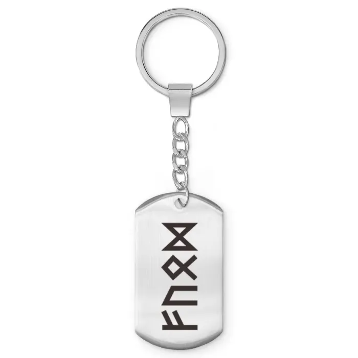 Брелок-жетон для ключей из полированной нержавеющей стали с нанесёнными рунными символами.