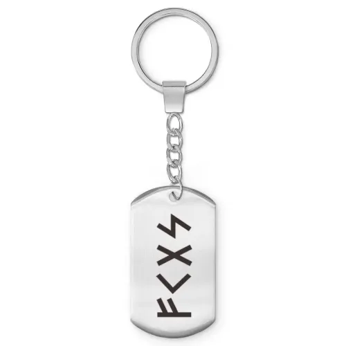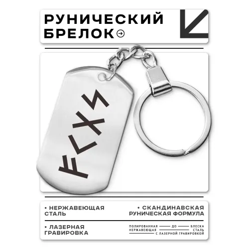 Брелок-жетон из полированной нержавеющей стали с изображением рун Феху, Кеназ, Гебо и Соулу.