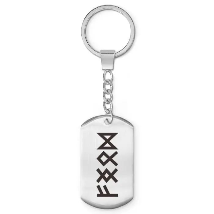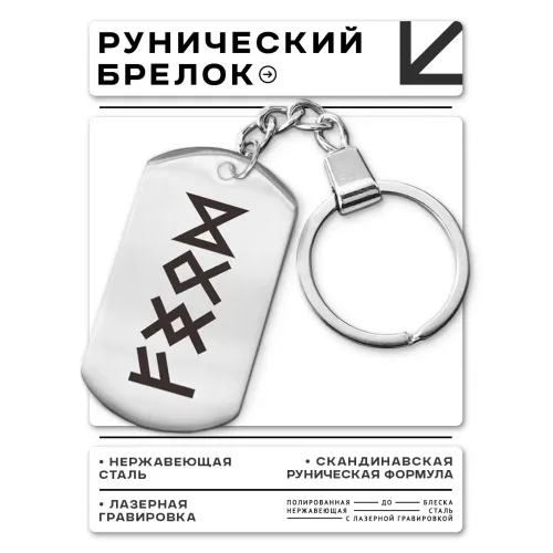 Брелок-жетон из полированной нержавеющей стали с изображением рун.