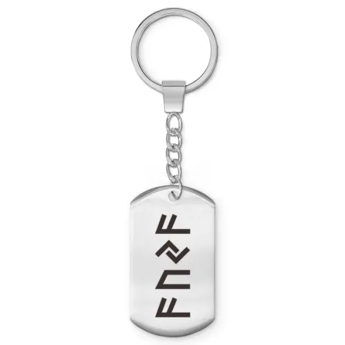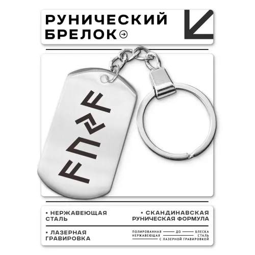 Брелок-жетон из полированной нержавеющей стали с гравировкой рунической формулы.