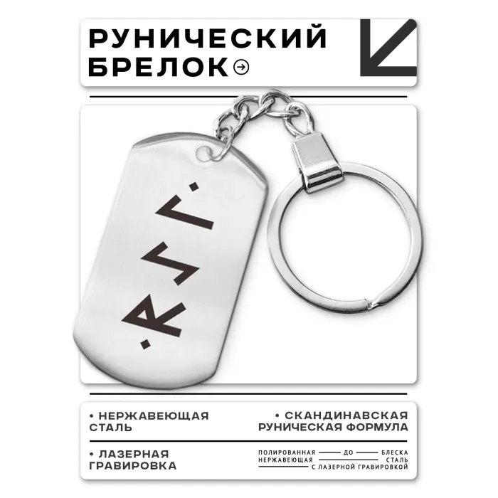 Брелок-жетон с символикой рун для защиты в пути. Изготовлен из полированной нержавеющей стали.