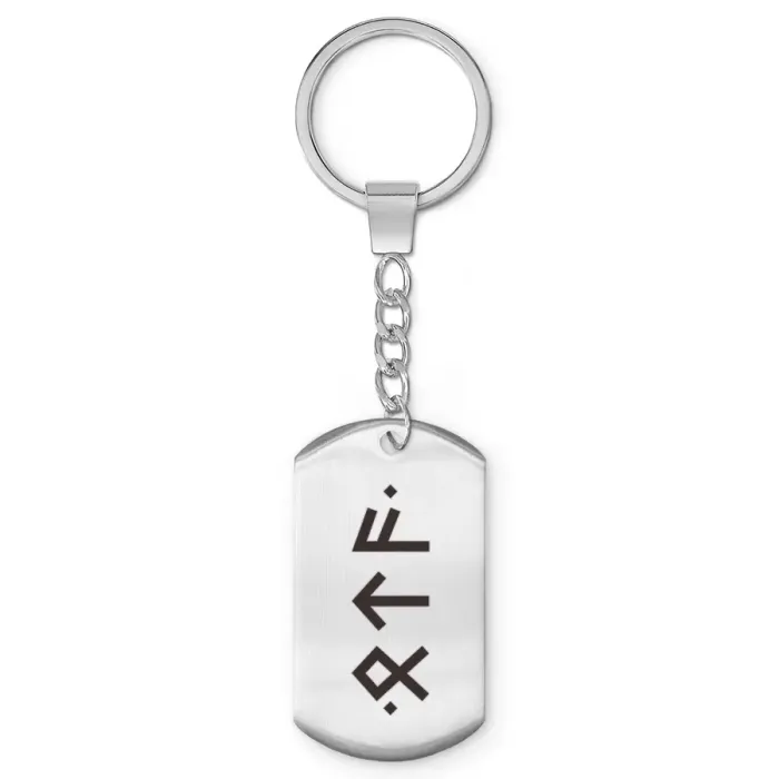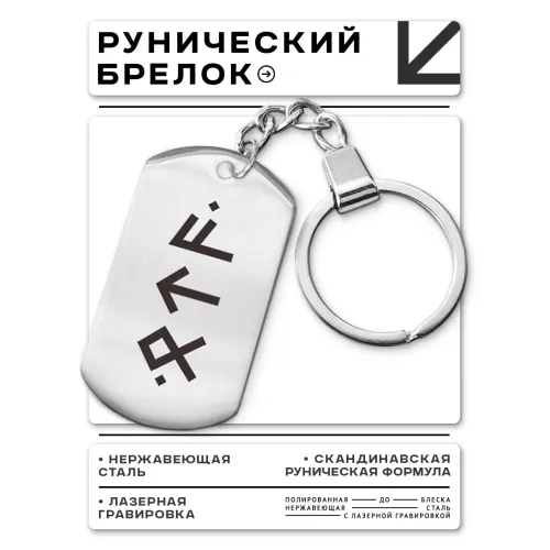 Брелок-жетон из полированной нержавеющей стали с изображением рун.