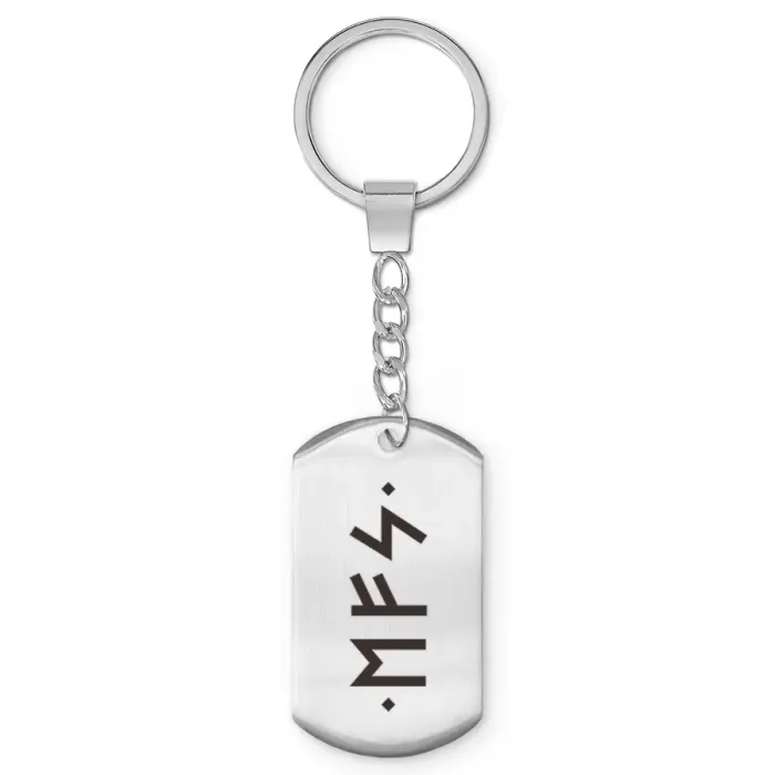 Брелок-жетон из полированной нержавеющей стали с изображением рун.