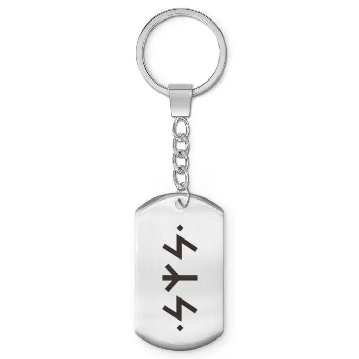 Брелок-жетон из полированной нержавеющей стали с дизайном «Солнечный щит» и рунами Соулу и Альгиз.