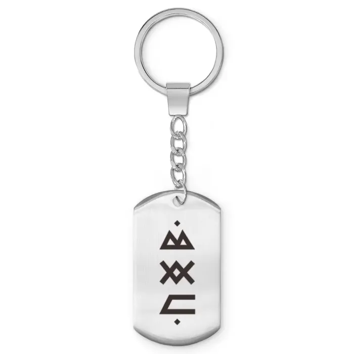 Брелок-жетон из полированной нержавеющей стали с рунической формулой в дизайне.