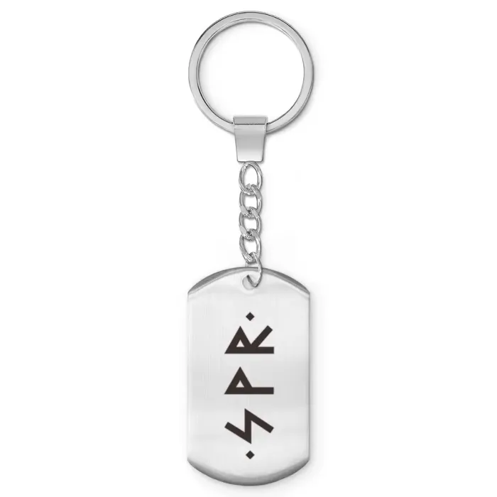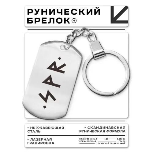 Брелок-жетон из полированной нержавеющей стали с изображением рун Соулу, Вуньо и Райдо.