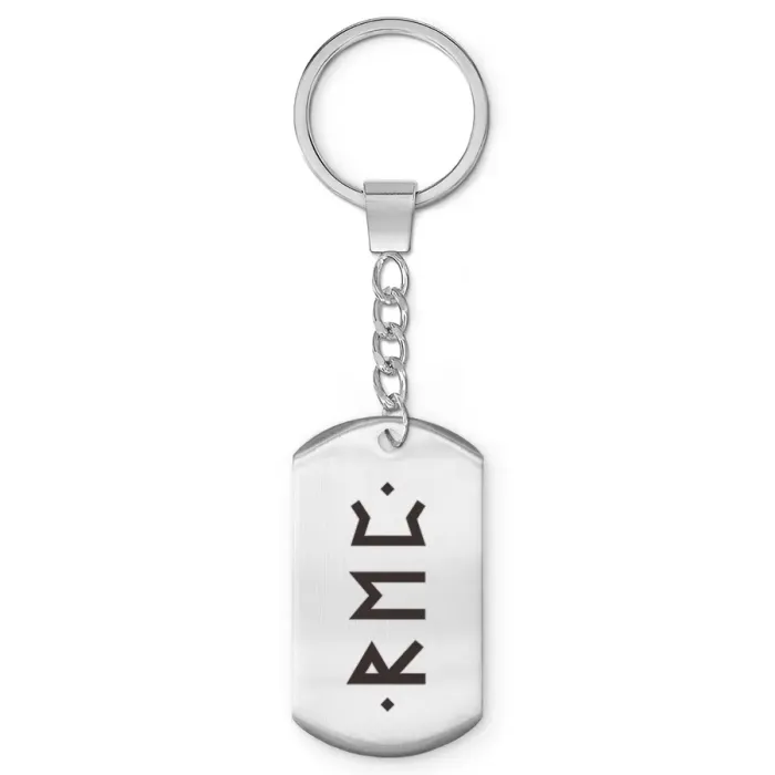 Брелок-жетон из полированной нержавеющей стали с изображением рун.