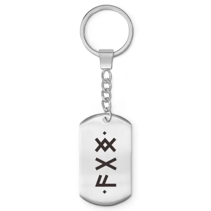 Брелок-жетон из полированной нержавеющей стали с нанесёнными рунами.