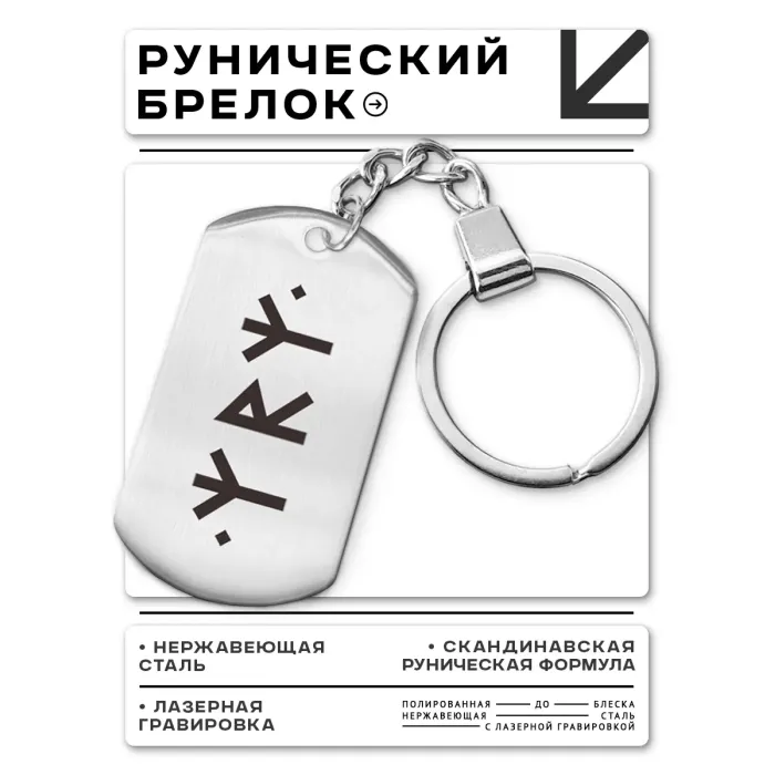 Брелок-жетон сувенирный, выполнен из полированной нержавеющей стали с изображением рун.