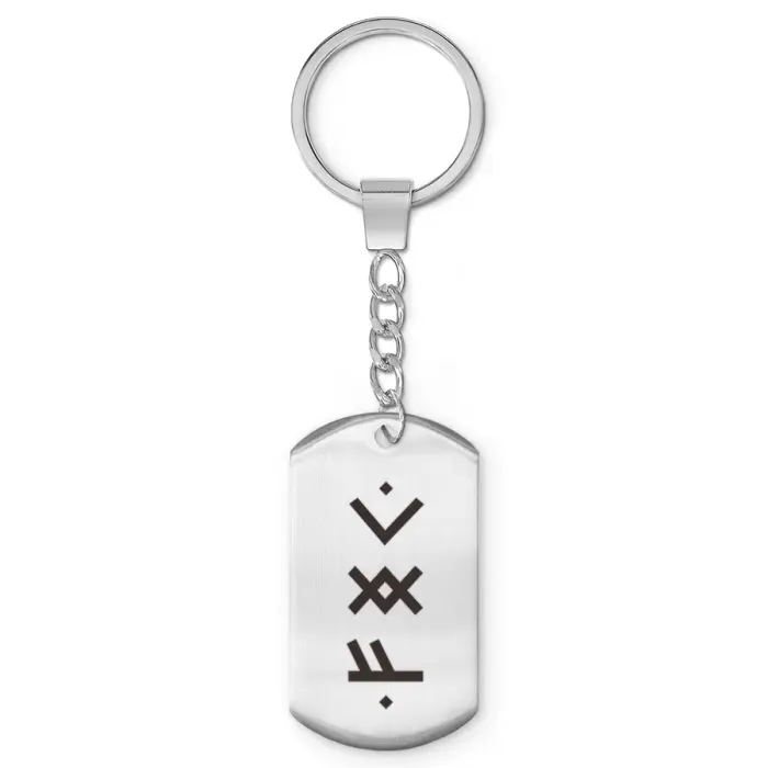 Брелок-жетон из полированной нержавеющей стали с символической надписью «Активация трудолюбия».