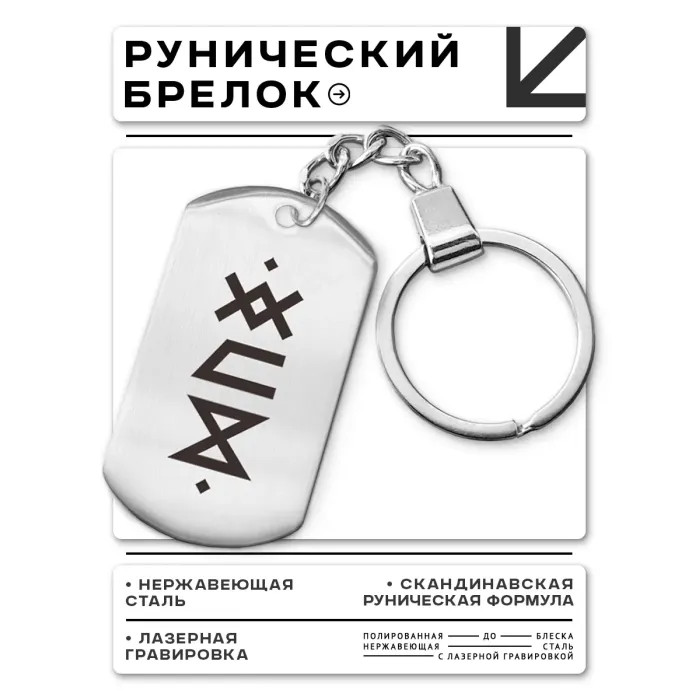 Брелок-жетон из полированной нержавеющей стали с символикой рун.
