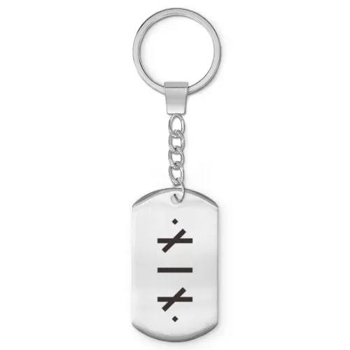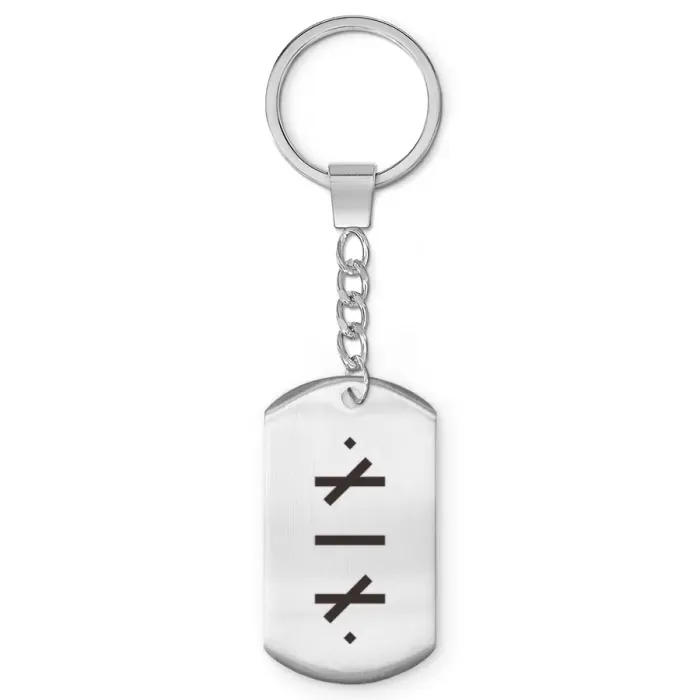 Брелок-жетон из полированной нержавеющей стали с рунической формулой в дизайне.