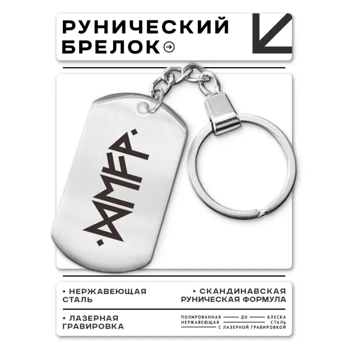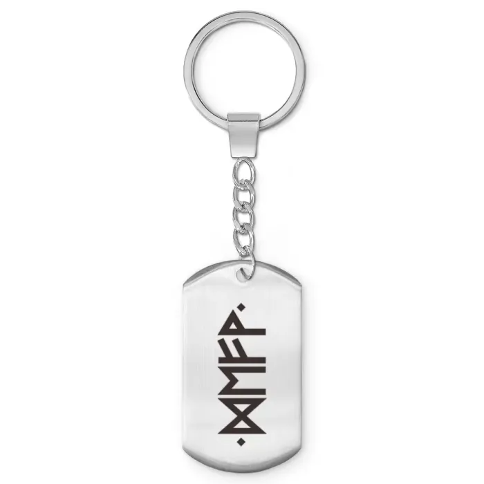 Брелок-жетон из полированной нержавеющей стали с рунической формулой «Прорыв».
