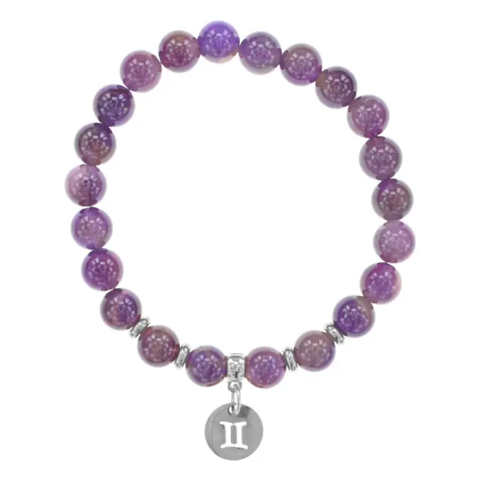 Браслет Знаки Зодиака - Близнецы с нат.камнем Аметист 8мм BSZ04-03