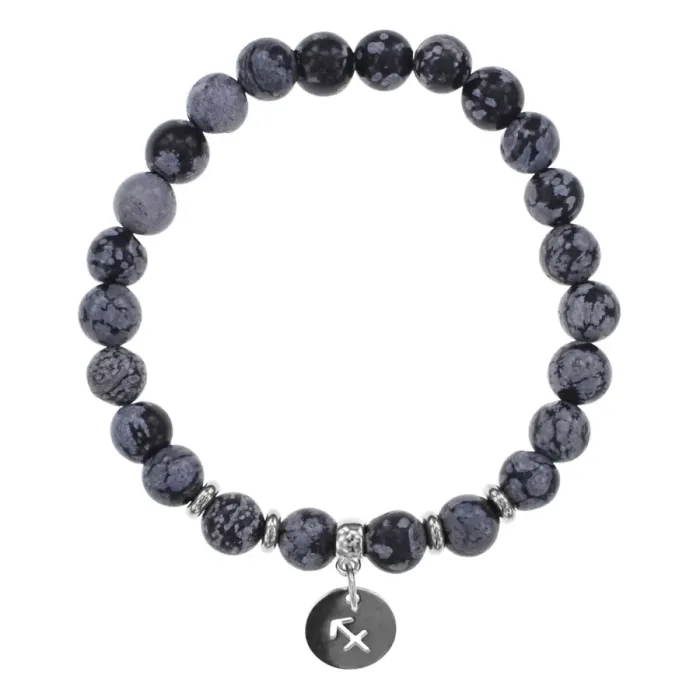 Браслет Знаки Зодиака - Стрелец с нат.камнем Снежный обсидиан 8мм