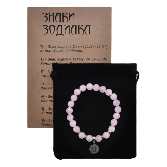 Браслет Знаки Зодиака - Телец с синт.камнем Розовый кварц 8мм BSZ04-14