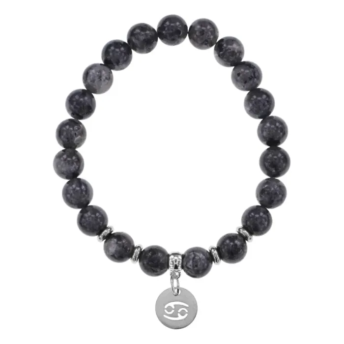 Стрейч-браслет с символом знака зодиака Рак и бусинами из натурального камня лабрадор.