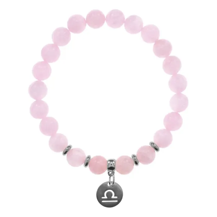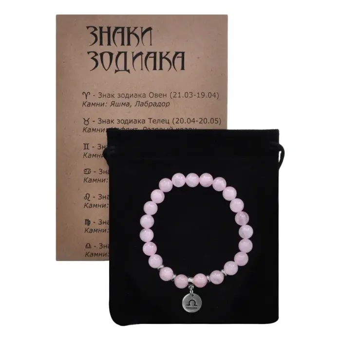 Браслет Знаки Зодиака - Весы с синт.камнем Розовый кварц 8мм BSZ04-19
