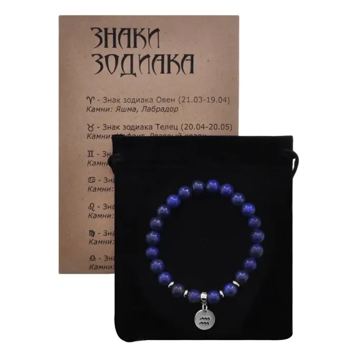 Браслет Знаки Зодиака - Водолей с нат.камнем Лазурит 8мм BSZ04-23