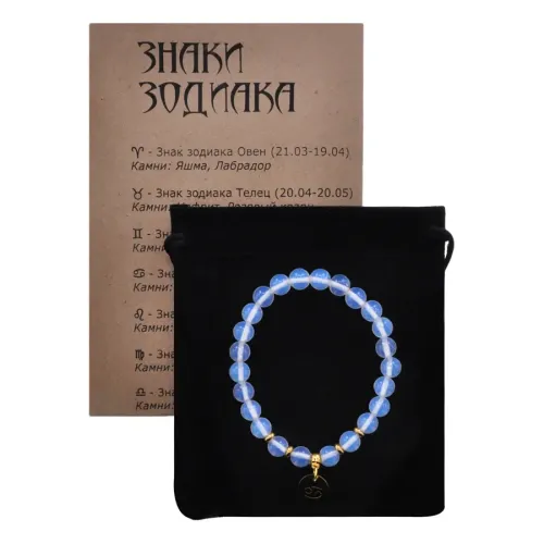 Браслет Знаки Зодиака - Рак с синт.камнем Лунный камень 8мм BSZ05-04
