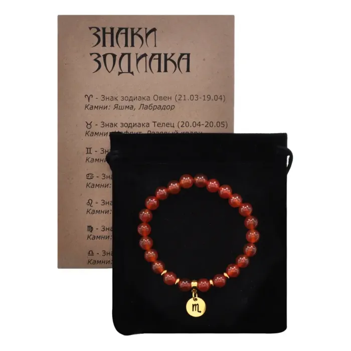 Браслет Знаки Зодиака - Скорпион с нат.камнем Сердолик 8мм BSZ05-08