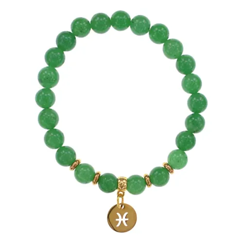 Стрейч-браслет с символом знака зодиака Рыбы и бусинами из натурального нефрита.