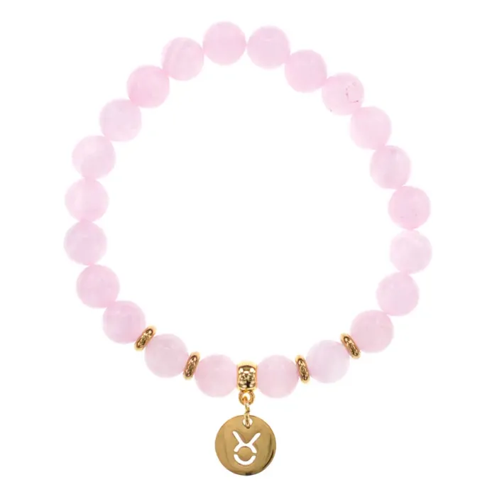 Стрейч-браслет с символом знака зодиака Телец, изготовленный из синтетического розового кварца.