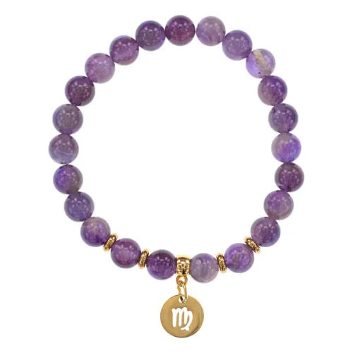 Браслет Знаки Зодиака - Дева с нат.камнем Аметист 8мм BSZ05-18