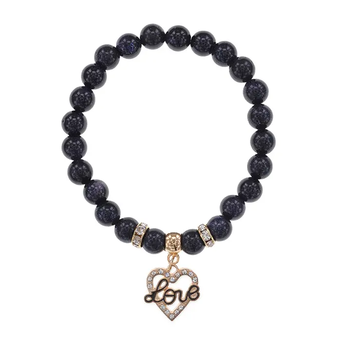 Браслет Сердце Love (Любовь) синт.камень Синий авантюрин 8мм BS-CR-0122