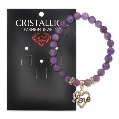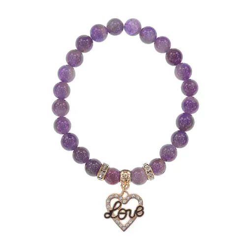 Браслет Сердце Love (Любовь) нат.камень Аметист 8мм BS-CR-0123
