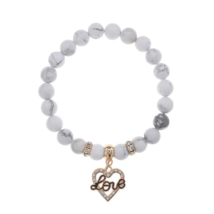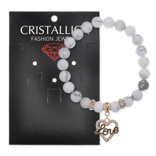 Браслет Сердце Love (Любовь) нат.камень Кахолонг 8мм BS-CR-0127