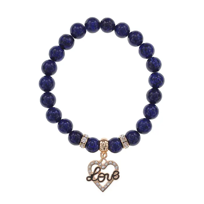 Браслет Сердце Love (Любовь) нат.камень Лазурит 8мм BS-CR-0130
