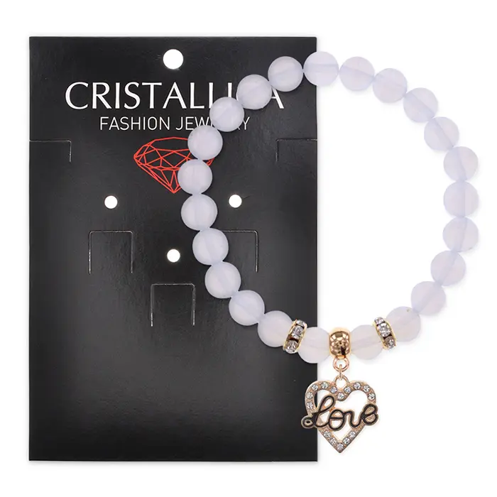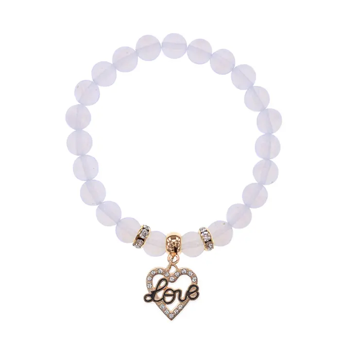 Браслет Сердце Love (Любовь) синт.камень Лунный камень 8мм BS-CR-0131