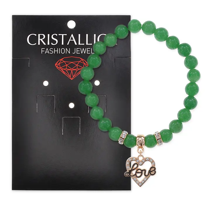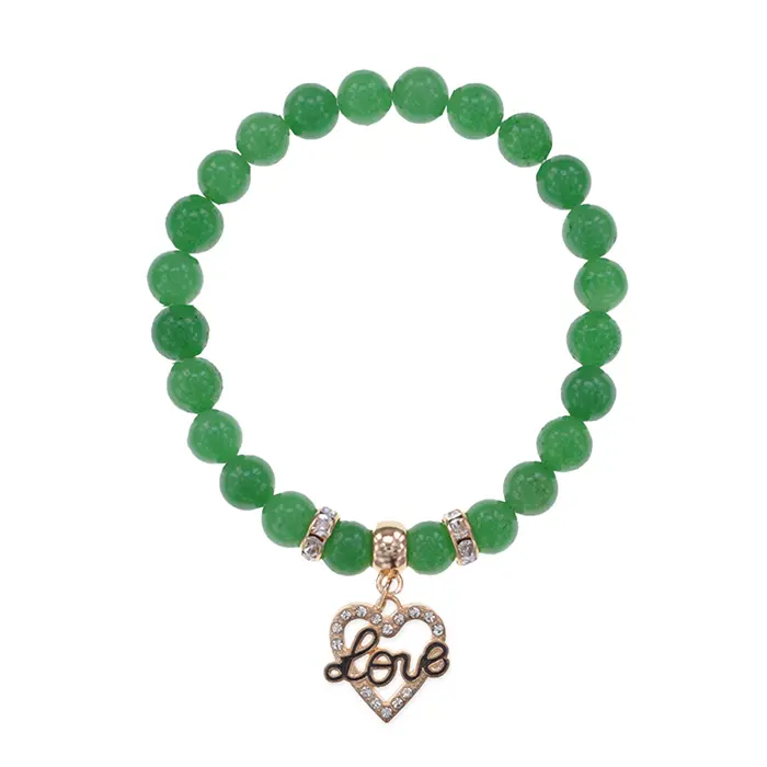 Браслет Сердце Love (Любовь) нат.камень Нефрит 8мм BS-CR-0133