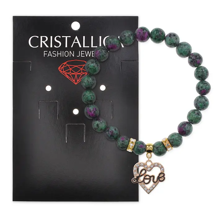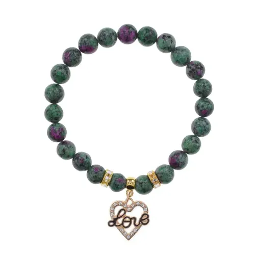 Браслет Сердце Love (Любовь) синт.камень Цоизит 8мм BS-CR-0142