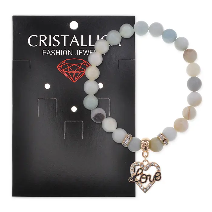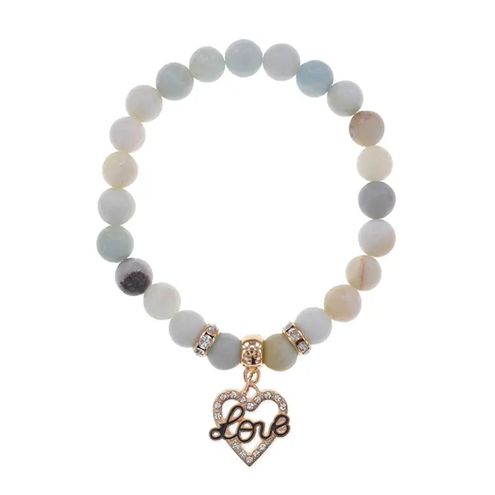Браслет Сердце Love (Любовь) нат.камень Амазонит 8мм BS-CR-0146
