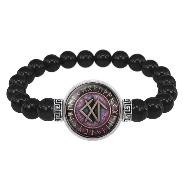Размеры и комплектация: Диаметр бусин 8 мм, диаметр линзы 20 мм, внутренний диаметр браслета около 5.5 см. Упаковка — прозрачный полипропиленовый пакет.
